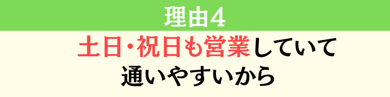 当院は、木曜日をのぞいた平日・土日・祝日に営業しております。